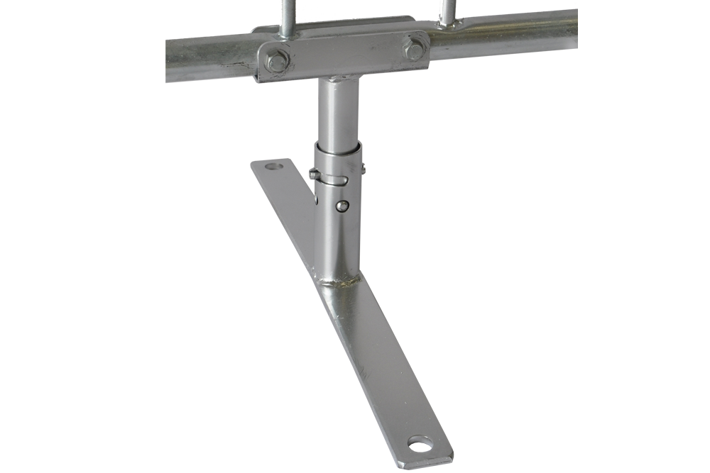 Stabil, säker och enkel av varmförzinkade stålrör och reflexplåt. Den galvade grinden är en smidig lösning vid mindre tillfälliga inhägnader eller avstängningar. Monteras ihop med ett lyft via hakar i sidorna. Den vridbara foten minimerar utrymmet vid transport.