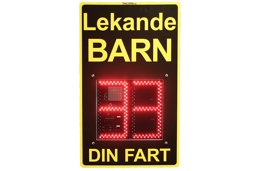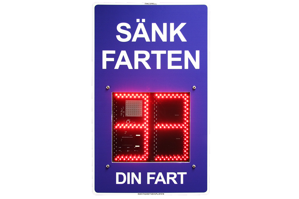 En hastighetsdisplay som tydligt visar när hastighetsgränsen överskrids. Kan drivas med solcell.