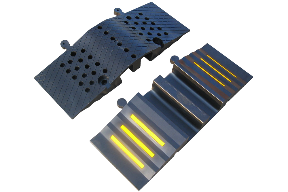 Slangbrygga 92 mm kabelgenomförning, maxbelastning 9 ton. Skyddar kabel och slang vid överfart av fordonstrafik. Ihopkopplingsbar efter önskad längd.