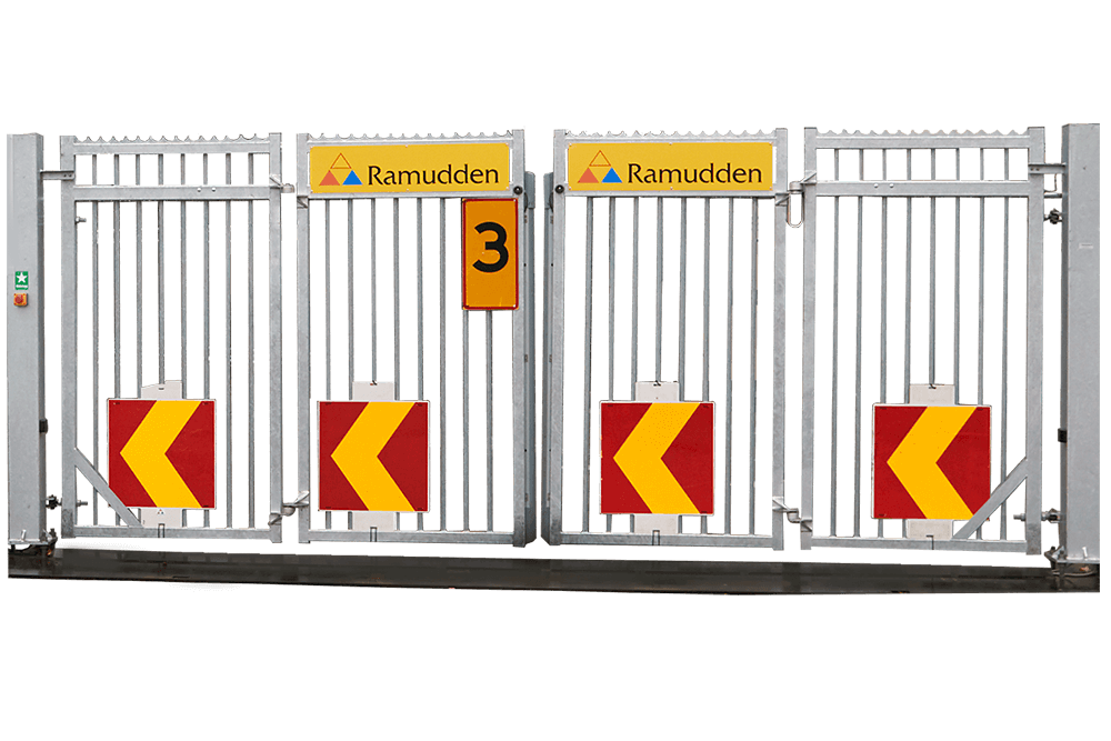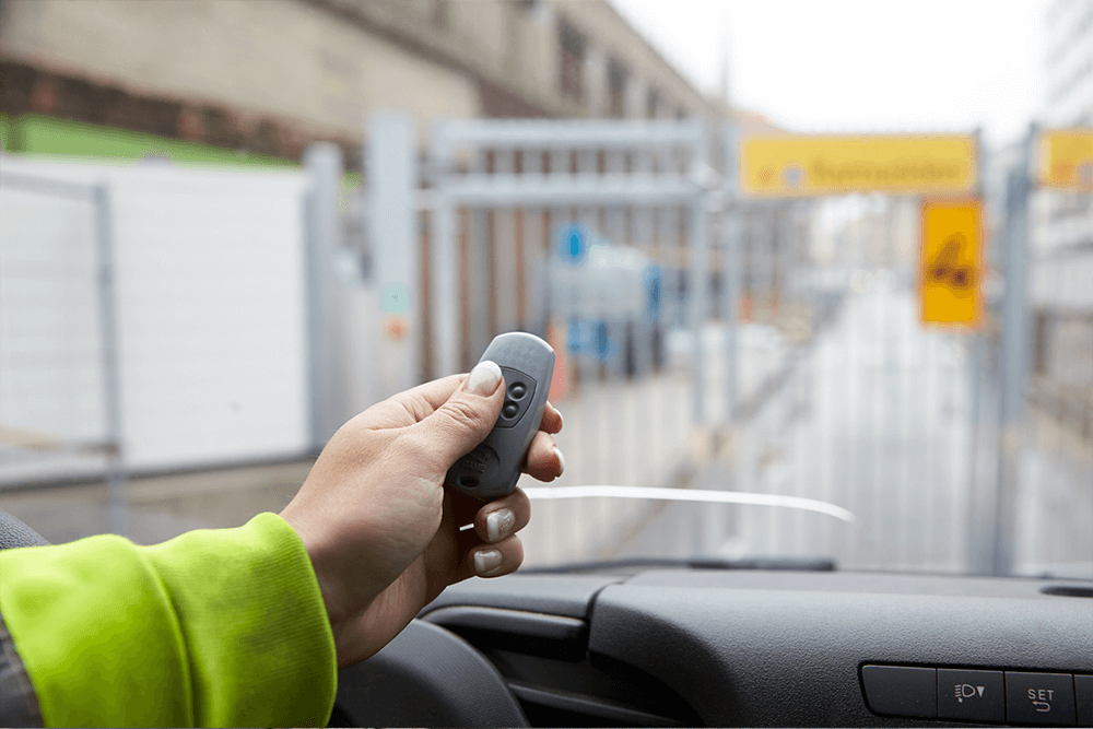 Elmotorstyrd vikgrind. Kan styras med fjärrkontroll eller från telefonen. Skapa ett skalskydd runt din arbetsplats och säkerställ att endast behörig personal tar sig in.