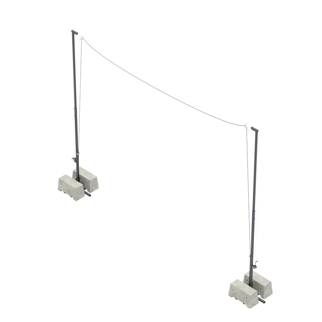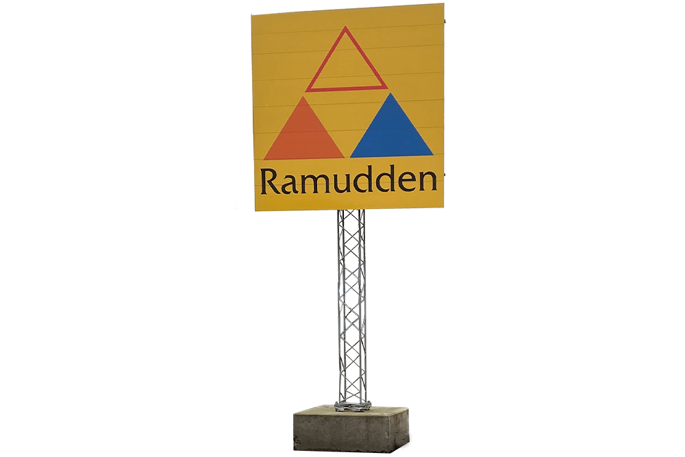 Betongfundament, fackverksmast, solcellspanel, vridbom, vägbom.