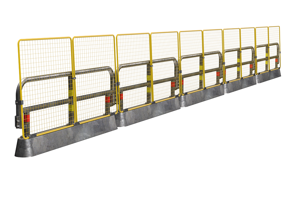 Med GC Fence 1,4 x 1,4 monterat på Trafikbalken får avspärrningen ett högklassigt skydd för gång- och cykeltrafikanter. Inga vikter eller fötter som sticker ut mot trafiken minimerar även snubbelrisken. GC Fence kan också monteras på fotplatta som traditionellt byggstängsel.
