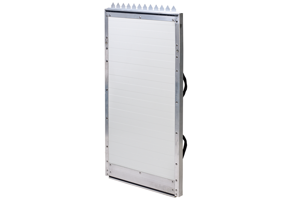 Panelsektion 680 mm med tandad rygg för montering på SVEA barriär. Panelerna är enkla att montera och har bullerdämpande egenskaper. SoundPanel får monteras på SVEA 2,85 i N2 klassning.