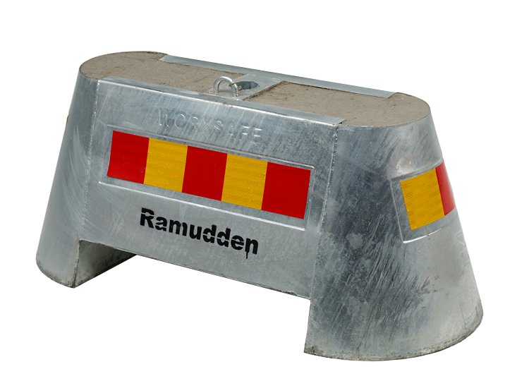 Stryktålig skyltbärare "Stålgris" varmförzinkad plåt, armerad och fylld med betong. Vikt 290 kg.