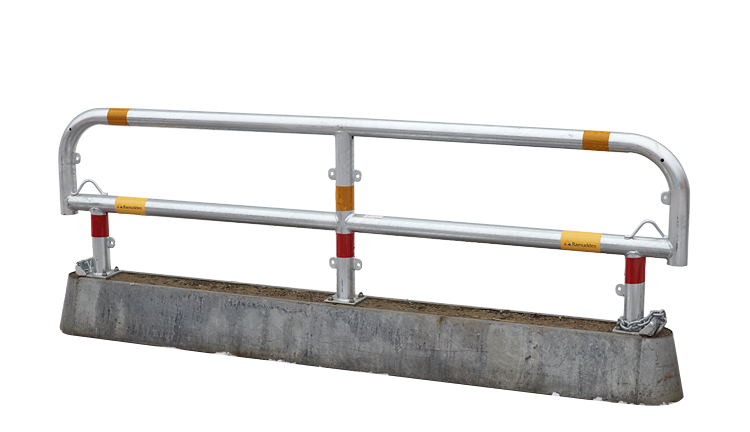 TA-Balk stål, 2,8 meter, 412 kg. För temporär avspärrning och personskydd vid byggarbetsplatser i stadsmiljö. Lämplig vid schaktkanter eller som avdelare mellan bil- och gångtrafikanter.