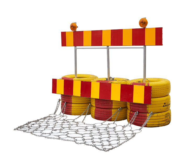 Skyltstativ komplett med nät, X2 markeringsskärmar och blinkljus.